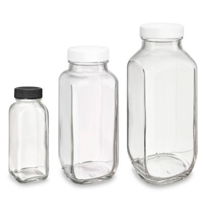 Glass Juice Bottles, Square Glass Jars in Stock ULINE